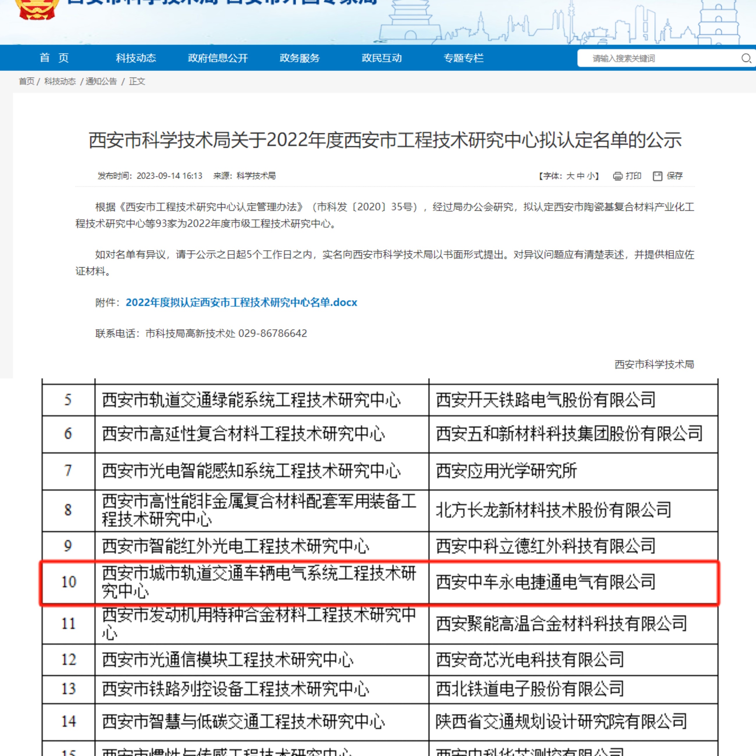 近日,捷通公司分别被西安市科学技术局和陕西省工业和信息化厅评定为“西安市城市轨道交通车辆电气系统工程技术研究中心”和“陕西省第十一批省级技术创新示范企业”。这标志着公司在技术研发能力、技术创新能力、研发平台建设方面再次迈上了一个新台阶。捷通公司将继续以建设技术中心为抓手,引导支持企业自主创新,为公司展现新作为、新担当,谱写公司高质量发展新篇章。